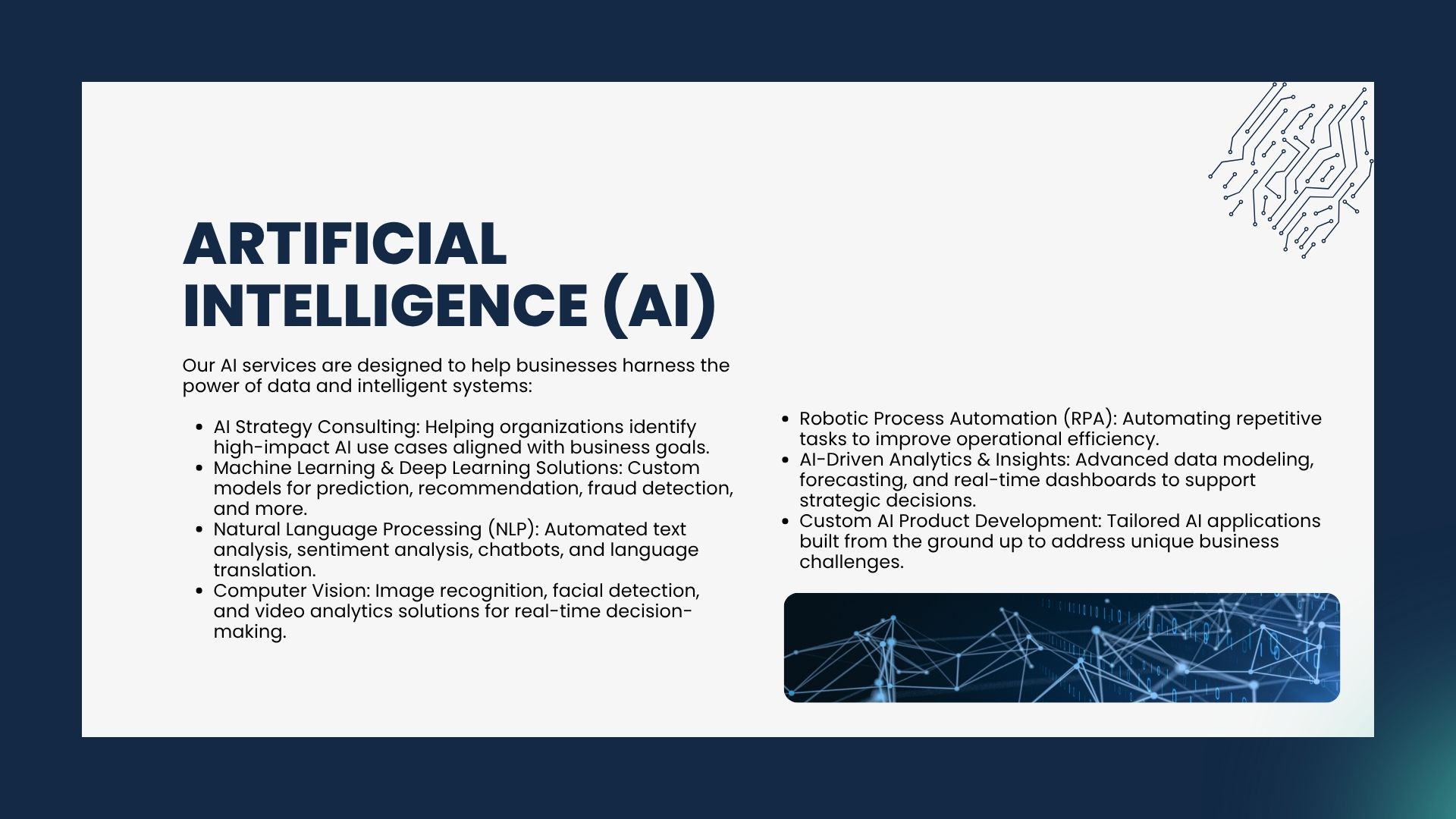 To empower businesses with innovative technology and AI-driven solutions that transform operations, unlock new opportunities, and create a smarter, more connected world